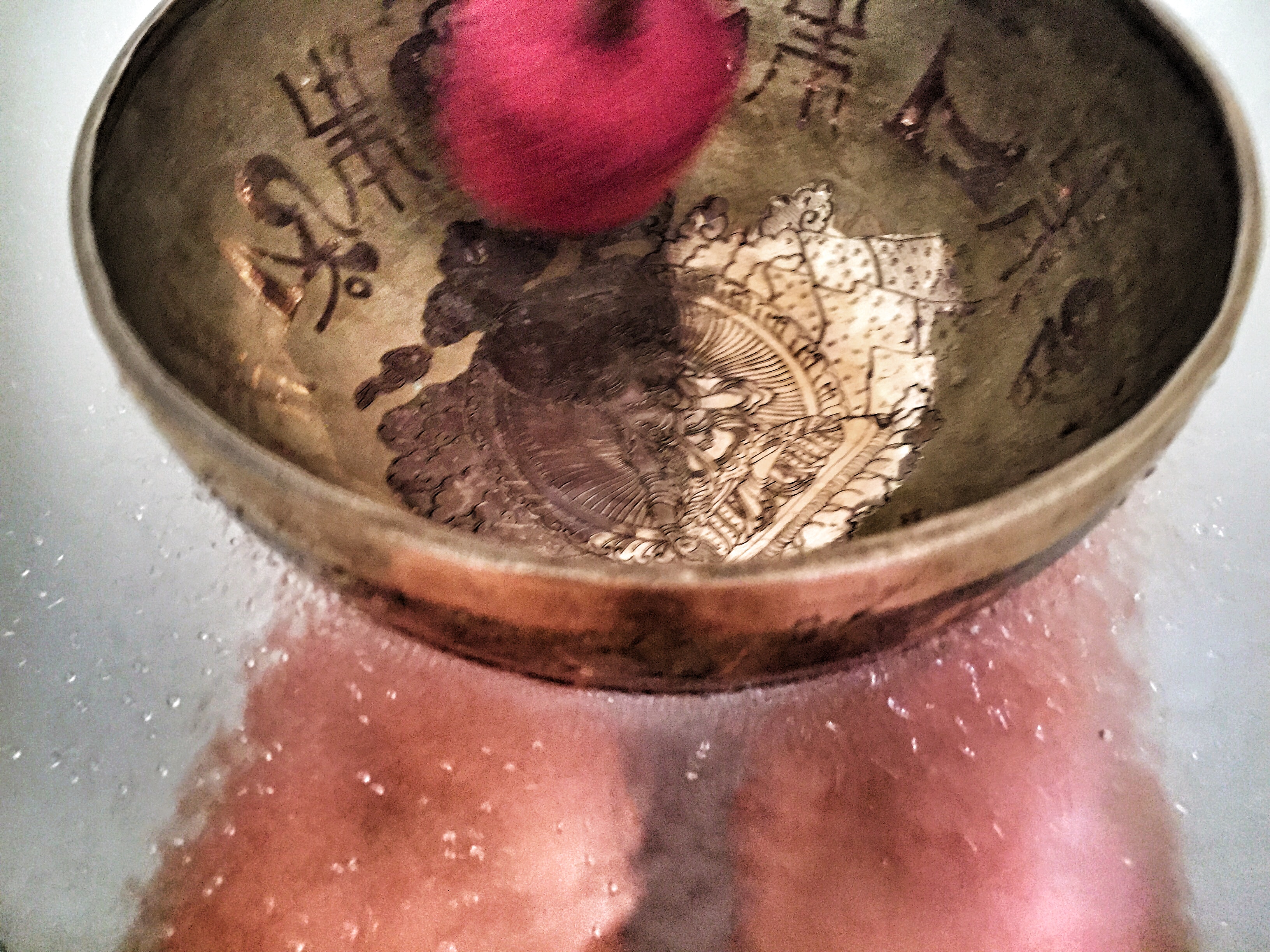 Ist eine Zelle krank oder defekt, schwingt sie nicht mehr in ihrer natürlichen Weise. Die Schwingungen der Klangschale dringen tief in Gewebeschichten ein und können gestörte Zellen harmonisieren. Dazu muss die Klangschale nicht einmal auf dem Körper aufgesetzt sein. Die Schwingungen dringen durch die Luft in den Körper, weil sich die Schallwellen von der Quelle weg gleichmässig ausbreiten. Das merkst Du, wenn eine Klangschale angespielt und in die Nähe Deines Körpers gehalten wird.
