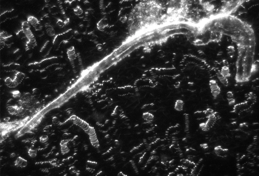 Epithelzelle im Urin unter dem Mikroskop im Dunkelfeld